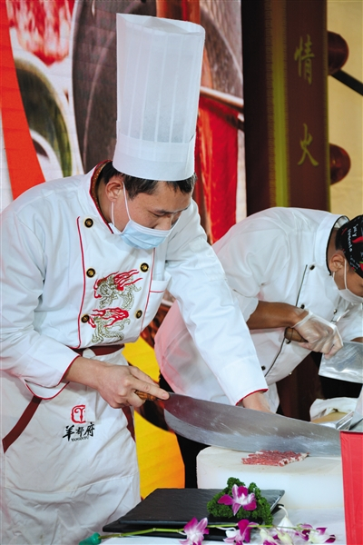 火锅涮品争霸赛主要比拼内容为“涮品摆盘”。比赛现场要求选手15分钟之内完成一份火锅涮品摆盘,然后由3名专家评委进行打分,并邀请活动现场30名消费者进行不记名投票,保证比赛的公正。