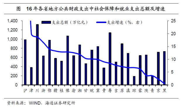 转移性收入对中西部省份高消费增速有一定解释力,但影响有限。比如像四川、湖北和河南等中西部省份,在社会保障和就业支出规模已经较高的情况下,16年该项支出增速分别为18.8%、14.0%和12.9%,均保持在较高水平。转移支付的增长同样带动居民购买力的提高,从而起到刺激消费的作用。但由于转移性收入在居民可支配收入中占比有限,且不同省份间财政转移支付增速情况并无特别明显的规律,因此,转移性收入的提升不是解释区域消费短期变动的主要原因。