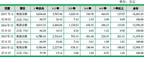 数据显示,佳力图2014年至2017年1-6月应收账款余额分别为12,994.17万元、11,107.43万元、13,598.20万元、14,401.95万元;其中,一年以内应收账款分别为9,586.60万元、6,774.54万元、9,013.33万元、8,694.68万元。