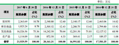 数据显示,佳力图2014年至2017年1-6月存货分别为14,579.58万元、17,546.97万元、16,919.78万元、20,020.35万元、21,682.59万元;同期账面余额分别为17,581.35万元、16,991.83万元、20,161.31万元、21,929.59万元。