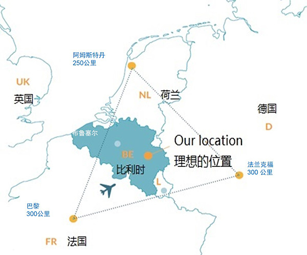 此外,与中国之间的物流运输通过海运(列日河港)及空运(沙勒瓦机场,列日机场,布鲁塞尔国际机场)都可以便捷迅速地实现。