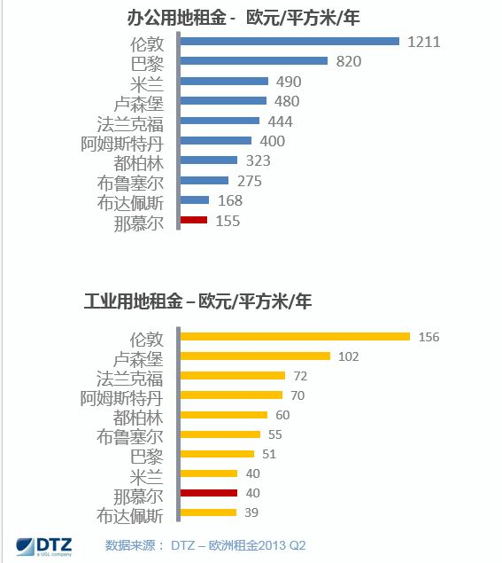 举例来说,列日机场跑道2公里直径范围内,租用面积2000平方米以上(含)的场地,租赁价格每月约3.5欧元/平方米。此外,企业可选择购买现有建筑,还可以购买土地兴建符合自身需求的建筑项目。