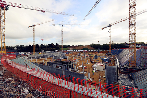 正在建设中的中比科技园智慧谷,目前已完成地下空间封层。园区外是新鲁汶市为中比科技园规划的可直接驶入高速公路的马路,已经建成即将通车。 图片来源:澎湃新闻