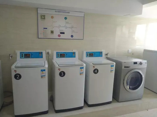 记者发现,每栋公寓的每个楼层均设有洗衣房,配备5到6台智能洗衣机。租户可以随时通过手机app查看洗衣设备状态,提前预约,无需排队等候。洗衣房内还设有干衣机,解决了阴雨天气及晾晒场地的局限带来的衣物晾晒难问题。