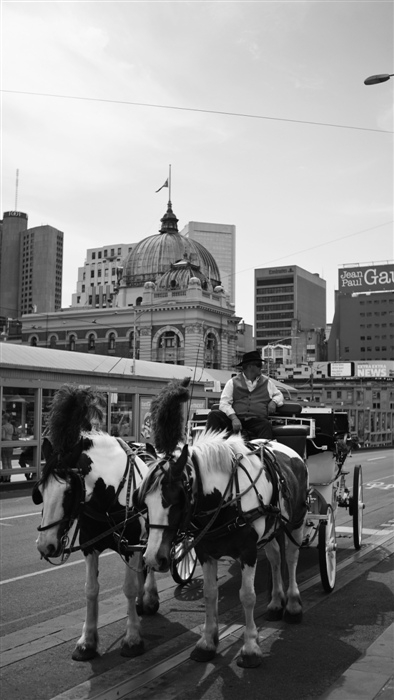 从19世纪的海上时光回到墨尔本的今日都市,平日坐满了晒太阳的人群的联邦广场,又有着非同平日的精彩,那是女人们用头顶的缤纷装扮着墨尔本的初夏。这本就是个女人的季节,墨尔本赛马节的场外精彩,正是女人们头顶上一顶顶新颖别致的帽子。这是城市的传统,重要到如果没有了帽子,女人们便不能过好墨尔本翩翩而至的一整个夏天。走过眼前的帽子有用鲜花做的,有用水果做的,有飞禽羽毛做的…… 连那辆复古马车的两匹白骏马,也都在头顶戴着招摇的鹅毛,载着客人慢慢踱过典雅的佛林德斯车站和长长的王子桥。