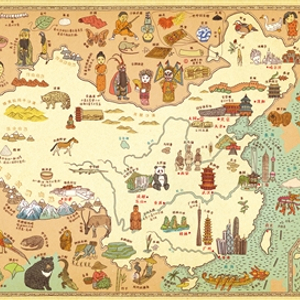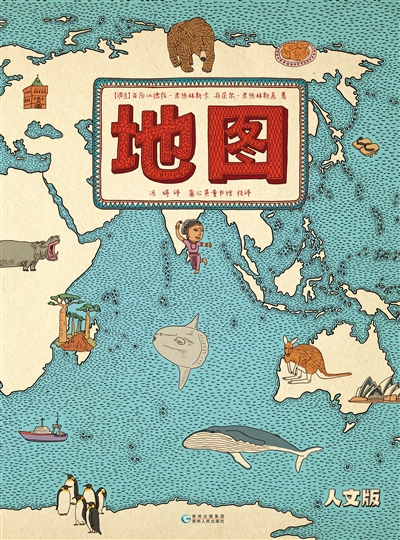 每个人心中都有一幅世界地图,不过有的人清晰,有的人模糊,这取决于我们对世界的熟悉度。丹尼尔与亚历山德拉创作出了一版新奇、独特的世界地图——《地图(人文版)》。因为这部作品,夫妻二人成为享誉国际的童书插画师。这本地图之所以风靡,因为它打破常规,采用8开的大开本,颠覆了人们对传统地图的刻板印象。以往的地图中规中矩,追求精密与细致,力图以上帝全知的视角还原地球客观的样貌。但这样的方式,虽使地理的分布一览无余,却拉远了我们与自然的距离。大地上一切蔚然壮观的山河与建筑,全被压缩在扁平的纸面上,受到经纬坐标的局限;海洋中所有呼吸游弋的生物,只得隐匿在海平面以下,悄无声息。看此类静态的地图,常会生出“物与我皆无尽”的敬畏感。
