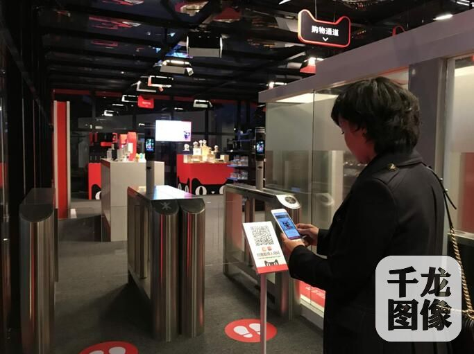 12月3日至5日,天猫无人超市亮相第四届世界互联网大会。图为消费者通过智能闸门,从而快速完成“无感支付”。千龙网记者陈群摄。