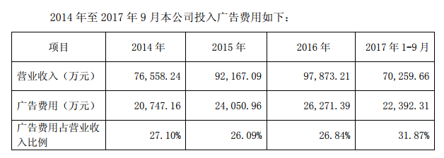 莎普爱思在其公告解释称,广告费用占营业收入比重较高,主要原因系本公司产品较为单一,目前滴眼液产品占公司营业收入比重超过75%(2016 年经审计数),与其他多品种经营的上市公司相比,本公司通过广告投入提高品牌知名度,弥补公司产品品种单一的不足。