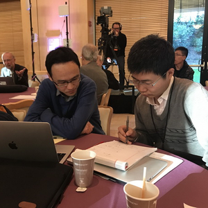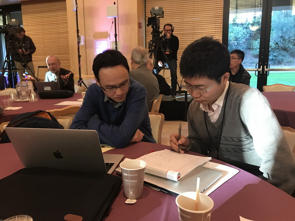 美国当地时间12月4日,2018数学“新视野奖”颁奖典礼前的中午,加州冬日的阳光洒满斯坦福大学的讲堂。澎湃新闻(www.thepaper.cn)记者见到了这两位出自北大同班的青年数学家。他们均戴着眼镜,衬衫外罩毛衣,恽之玮执笔在纸上计算,张伟则打开笔记本查询资料。直到午饭时期,他们才能利用这间隙接受采访。