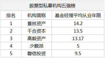 同时,今年业绩表现突出的私募机构,基金经理的平均从业年限,也是挺长的。