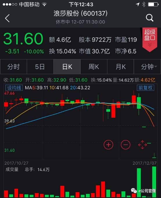 12月1日,在证监会的例行新闻发布会上,发言人强调将持续对上市公司高送转行为保持高压监管态势,并表示,尤其对其中长期没有现金分红的“铁公鸡”严格监管。周一(12月4日)开盘后浪莎股份开启连跌模式。