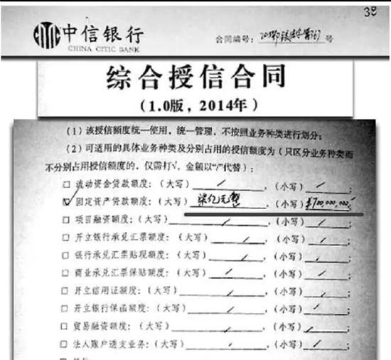 武汉“CFD 时代财富中心” 与中信银行的《综合授信合 同》,授信额度为固定资产贷 款 7 亿元
