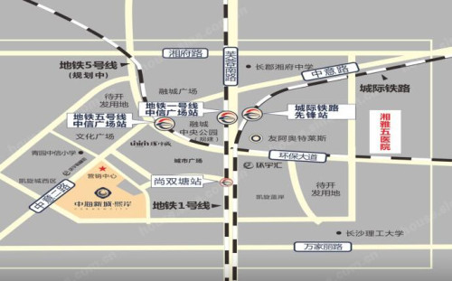 中海新城熙岸位于天心区中意路和新梅路交汇处,离地铁1号线尚双塘站不到1公里,另有101路、140路等公交车可以搭乘,公共出行方式较多。周边有中海环宇城、友阿奥特莱斯等购物广场,生活较为便利。项目自建2所幼儿园,自建的青园中信小学也开始招生运营,子女入学也较为方便。但总体而言项目离市区较远,且缺乏大型的商超,需等待片区未来的发展和完善。