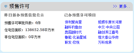 除此之外,保利爱尚里、融科钓鱼台、中交·中央公园、奥园.越时代、融创滨江壹号、鲁能.北渝星城、恒大香山华府、联发·欣悦、万科·观承、恒大滨河左岸、华宇温莎小镇、书香溪墅、东原世界时等13个楼盘也在近两日拿到预售许可证。