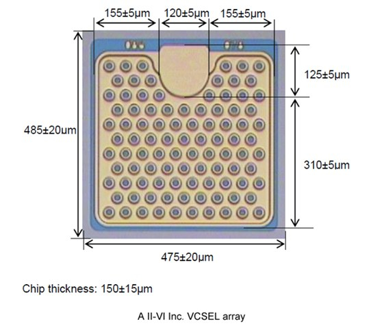 Finisar的财报公告中说的很清楚,他们生产的是VCSEL 阵列。“在第二季度,我们开始批量出货用于3D传感器的VCSEL 阵列,此外,我们还收购了德州Sherman占地70万平方英尺的工厂。明年下半年,我们预计该工厂将能生产6英尺晶圆的VCSEL 阵列,将拥有消费电子和工业产品。”