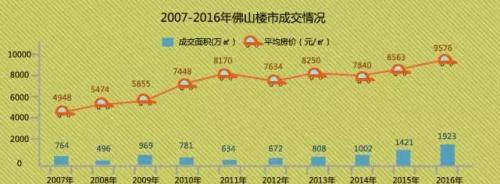 近十年来,佛山楼市量价稳步上升,2016年全市一手住宅均价比2007年上涨近95%,成交面积上涨超过150%。