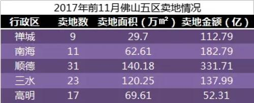 佛山前11月卖地422.35万㎡,卖地金额817.59亿,已经全面超过了2016年成交约306万㎡,成交金额约582亿的数据,同时,成交金额却创了近年新高,地价毫无疑问急剧攀升了。