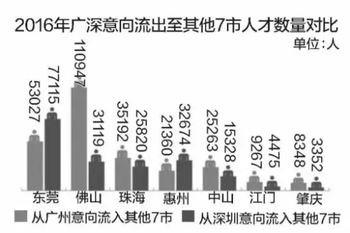 根据最新的《珠三角人才需求状况与流动趋势研究报告》,佛山成意向净流入人才珠三角最高;其中广州意向流入佛山的人才数量,多于深圳意向流入东莞的人才数量。