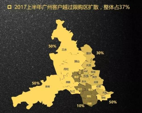 与此同时,一个很明显的现象开始产生,城市边界正在逐步消失,广州客户自西向东渗透,到如今越过限购区扩散,广州客户如今已遍布佛山。