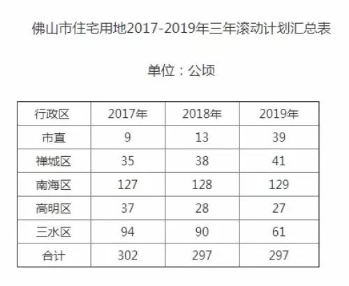 查看近年佛山土地供应情况发现,2015年和2016年佛山实际土地供应面积持续两年下降。根据佛山公布的住宅用地2017~2019年三年计划显示,佛山住宅用地供地计划将从2015年的410万平方米逐年下降到2019年的297万平方米,该供应量创下近6年新低。
