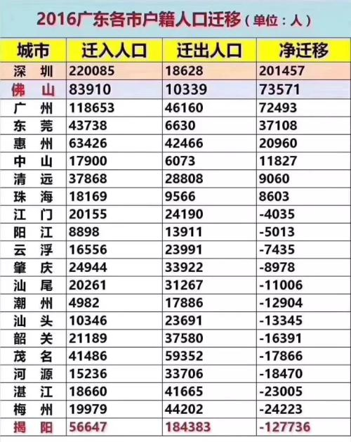根据今年百度地图给出的“人口吸引力增长指数TOP10城市”数据显示,佛山跻身全国前十。据统计,2016年佛山净迁移人数达73571人,成为广东第二个吸引力最强的城市。