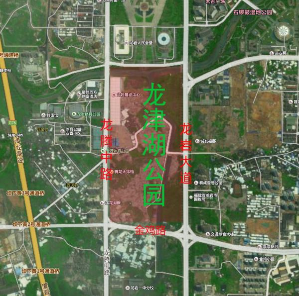 龙岩市龙津湖公园项目位于龙岩大道与龙腾路之间,南邻金鸡路、北临红坊溪。项目景观总面积305614.67㎡,驳岸护岸1.2公里,车行桥梁4座、人行桥梁9座,同时规划建设规划馆及配套文化设施(建筑面积15000平方米)、大剧院(建设面积36000平方米),项目预计年底竣工。