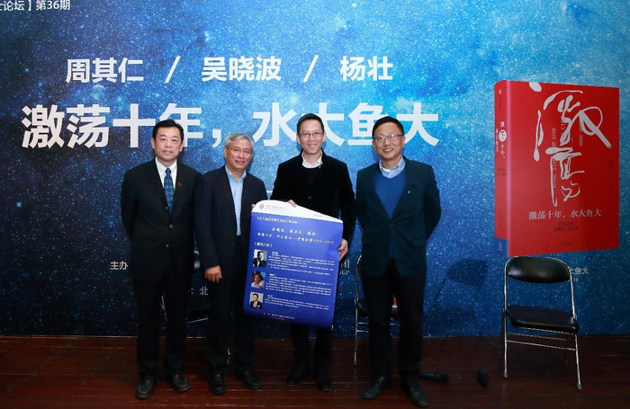 昨天,吴老师和周其仁老师再度相遇,在北京大学举办的第36期“北大国发院博士论坛”上,进行了演讲和对谈。