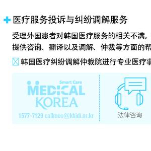 资料图片:韩国有专门机构受理外国患者对韩国医疗服务的相关不满,并提供法律咨询。发生医疗纠纷时提供咨询、翻译以及调解、仲裁等方面的帮助。来源于韩国保健产业振兴院。