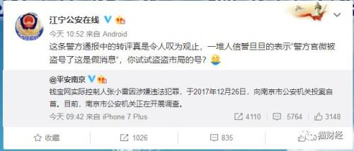 对此,“江宁公安在线”转发此条微博,并直接评论“一堆人信誓旦旦的表示“警方官微被盗号了这是假消息”,你试试盗盗市局的号?”给怼了回去。