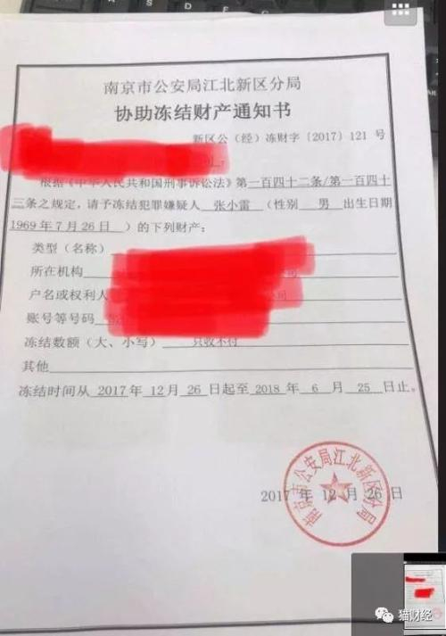 此外,网上流传的一张“南京市公安局江北新区分局协助冻结财产通知书”显示,张小雷已于昨日(26日)被有关部门申请冻结财产。冻结时间从2017年12月26日到2018年6月25日。但有关张小雷财产被冻结的官方消息尚未传出。