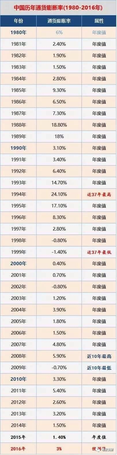 下图是官方统计的历年通货膨胀率的数据,给大家了解一下: