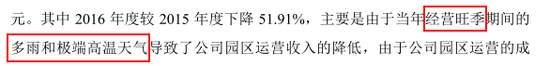 常州恐龙园在风险提示中解释了这一原因:净利润的下降主要是由于当年经营旺季期间的多雨和极端高温天气导致了公司园区运营收入的降低,请投资者注意偶然因素对公司经营带来的风险。