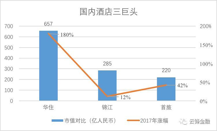 注:数据截止至2017.12.31日收盘,华住的美元市值按1:6.5折算