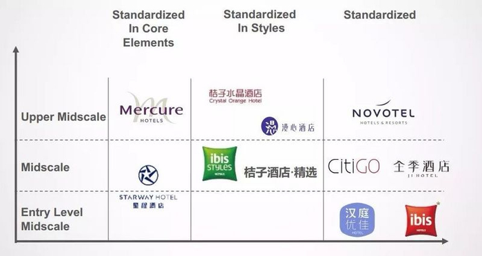 截至目前,除了汉庭和海友等经济连锁酒店品牌之外,华住旗下还拥有全季、星程等中端品牌,从法国雅高集团拿到授权运营的宜必思、美居、诺富特,以及刚刚收购的桔子酒店。