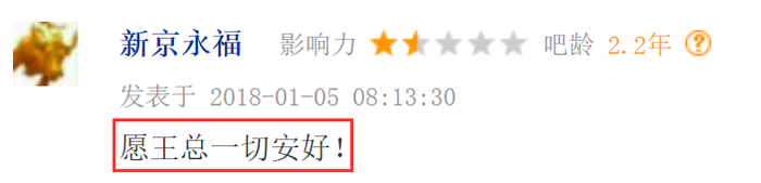 王仁果最后一次公开亮相是在上周五(2017年12月29日),他以泰合集团董事局主席的身份在北京参加第七届中国公益节活动。在其失联后,3万多股民并不是所有都落井下石,在股吧表达对他的祝福。