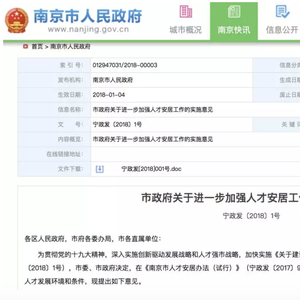 为贯彻党的十九大精神,深入实施创新驱动发展战略和人才强市战略,加快实施《关于建设具有全球影响力创新名城的若干政策措施》(宁委发〔2018〕1号),市委、市政府决定,在《南京市人才安居办法(试行)》(宁政发〔2017〕99号)的基础上,进一步加大人才安居工作力度,不断优化人才发展环境和条件,现提出如下意见。