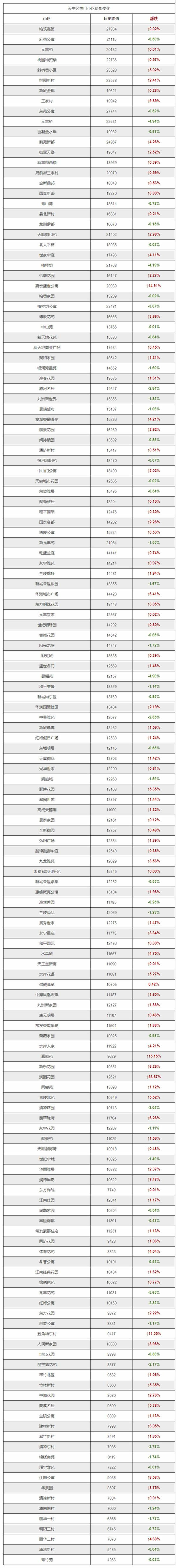 天宁区:2017年12月新房成交价在13666元/平米;二手房成交价在14097元/平米。统计150个社区房价,其中103个楼盘房价上涨,最高涨幅8.24%;47小区价格下降,最高跌幅11.43%。