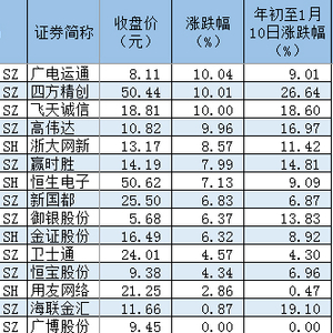 1月10日区块链概念股涨跌幅情况。数据来源:Wind金融终端