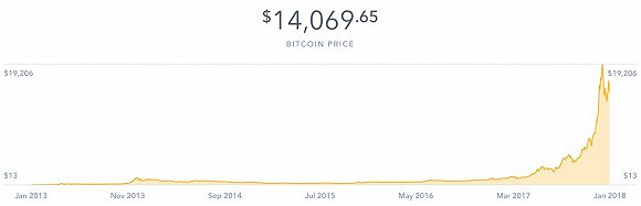 有次休息的时候,看到同事神神秘秘的围成一圈,在对着一个屏幕念叨着什么。我凑上去一看,是一张弯弯曲曲的折线图,最上面写着几个英文字母——Bitcoin。