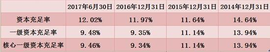 伴随资产规模扩张与风险加权资产增速较快等带来的资本快速消耗,哈尔滨银行核心一级资本充足率等指标经历了2015年、2016年连续下降,虽然在2017年上半年出现上升,但核心一级资本指标仍然接近监管红线。