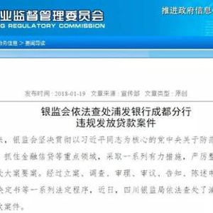1月19日,银监会公布了四川银监局依法查处浦发银行成都分行违规发放贷款案件情况。