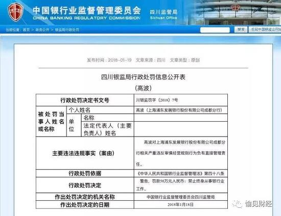 原标题:那个让浦发员工年终奖都缩水的成都分行违规放贷案,终于出处罚结果:罚单4.XX亿,浦发如何回应?| 愉见财经