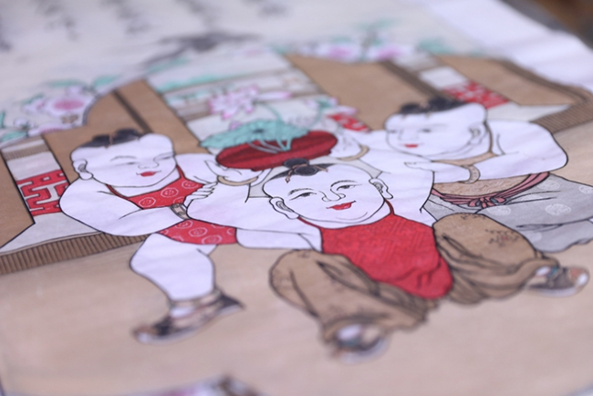 作为年画社培养的第一个学生,孙一波的身上倾注了太多人的期望。他喜欢看武侠片,桃花坞年画像一门快失传的武林绝技,而几个老师傅都是深藏不露的武林高手。“我感觉自己就像《射雕英雄传》中的郭靖,而王祖德老师他们一帮人就是江南七怪。”至今,他都是年画社七届学生中最出色的传承人。学了三年,他就复原了《一团和气》雍正版,获得山东省潍坊全国年画展金奖。
