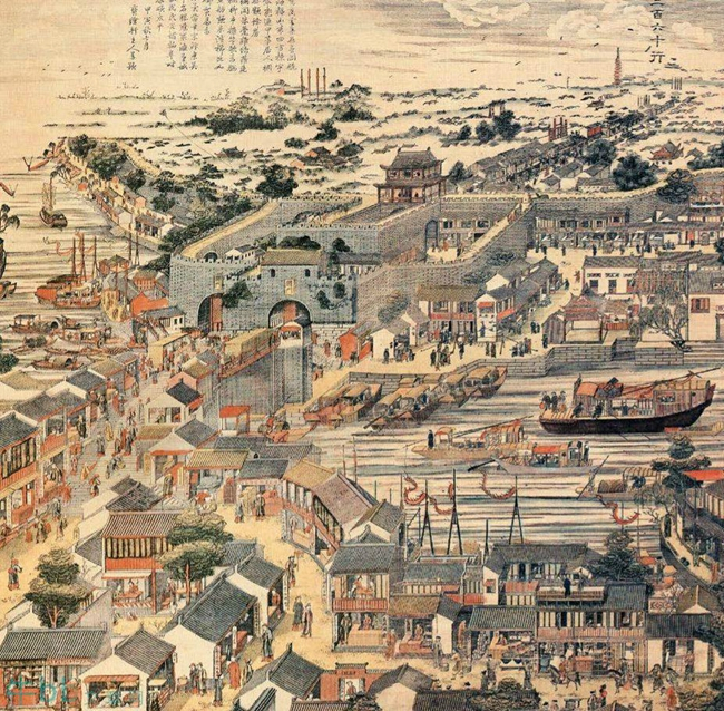 苏州人称年画为“画张”,与明代的称谓“画帖”相近。太平天国末年,山塘的年画作坊付之一炬,后迁至阊门内桃花坞一带,桃花坞年画因此得名。《红楼梦》第一回写:当日地陷东南,这东南有个姑苏城,城中阊门最是红尘中一、二等富贵风流之地。