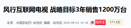 3年要卖1200万台互联网电视