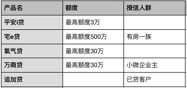 平安普惠APP显示,其产品包括最高额度3万元互联网小额贷款产品i贷、最高额度500万元的房屋抵押贷款产品宅e贷、最高额度30万元的无抵押贷款产品氧气贷、针对小微企业主最高额度30万元的万商贷和为已贷客户提供的追加贷几个大类,除宅e贷外,其他均为无抵押贷款。