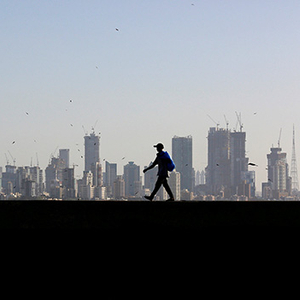 印度GDP 增速已连续三年领先于中国,尽管各界存在统计方法差异的争论,但印度经济持续高速增长已成不争的事实。图为当地时间2017年3月9日,印度第一大城市孟买,一男子行经一处商业区。视觉中国 资料