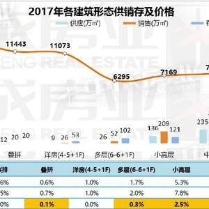 根据中成房业《2017年房地产市场年报》提供的数据,2017年成都小高层、中高层、多层及别墅类产品销售占比呈现上涨,消费者对面积适度要求越来越高,对高品质物业需求越来越强。