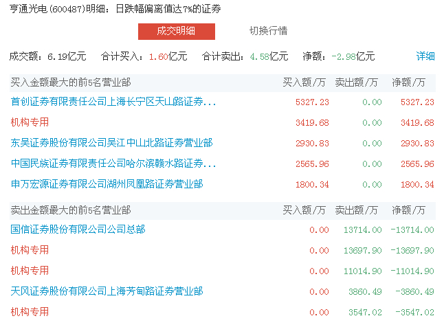 ▲亨通光电29日龙虎榜一览