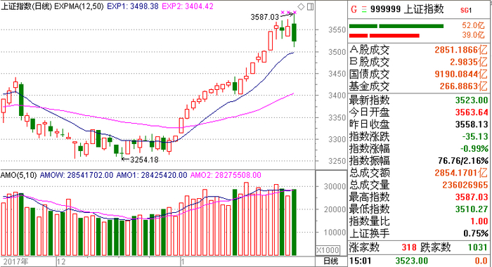 火山君思索了几天,也没想出答案,市场会选择哪种走势。事实上,市场总是很难预测的,还不如跟随趋势,只要沪指不跌破EXPMA的短期指标(目前点位在3498点),那么表明市场还算强势,上涨趋势是正常的;如果跌穿EXPMA的短期指标,那么就有进一步探底的可能。